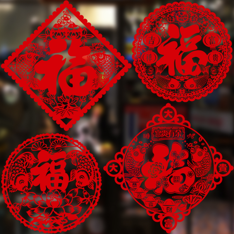 2022 New Year's Day shopping mall shop shop window glass door glued paper decorations wall stickers to draw New Year's window flowers