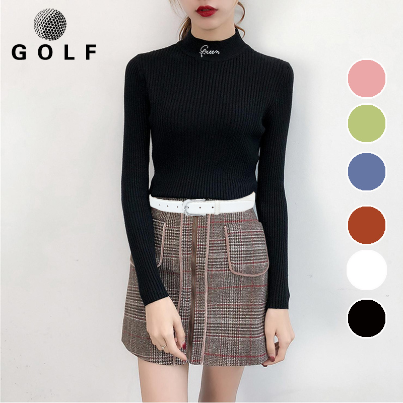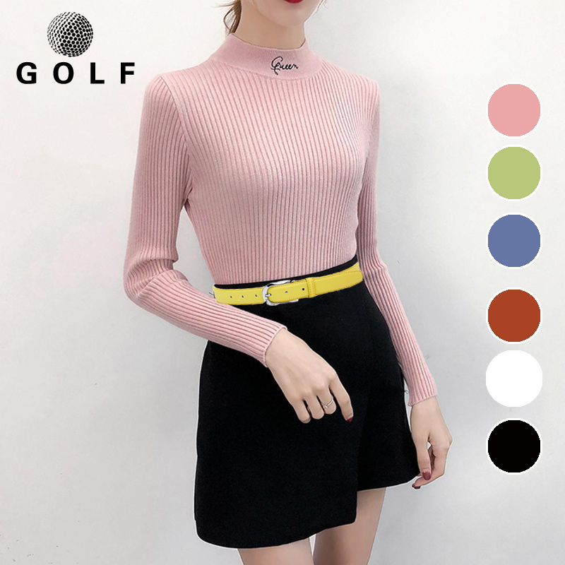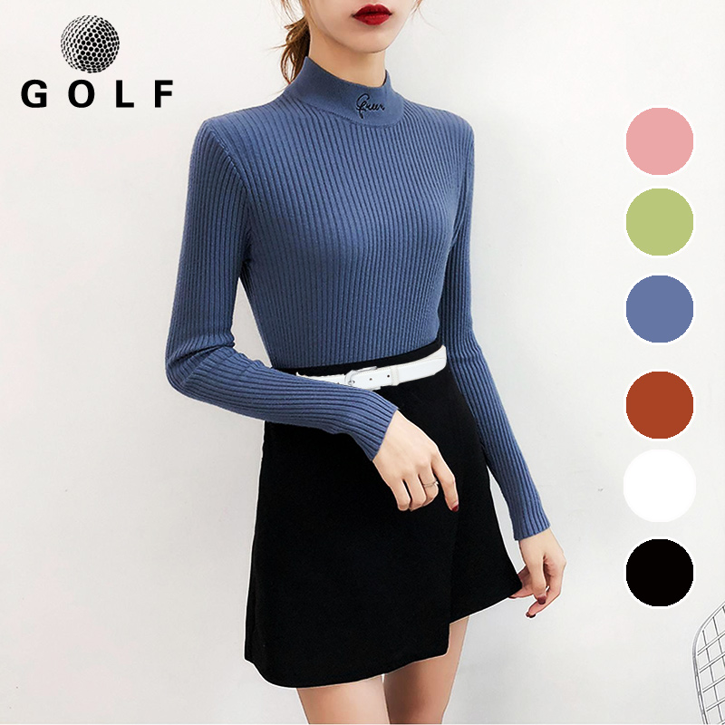 Golf outfit Women fall winter long sleeve sweater with undershirt high elastic knit cardigan with quick dry and breathable T-shirt