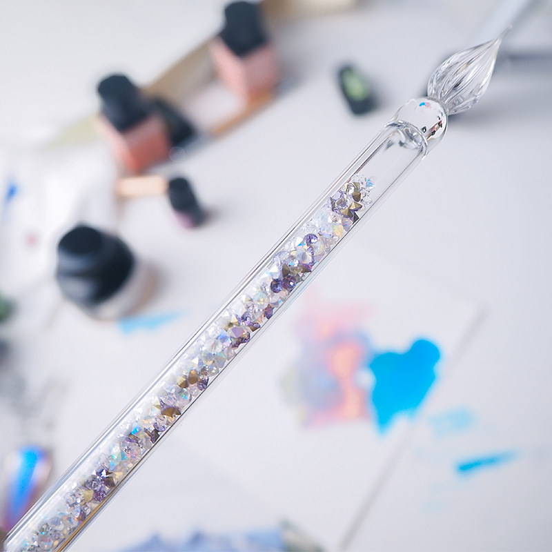 MIKKA Broken Drill Flow Sand Practicing Character Glass Pen Suit Star Chen Dip Pen Crystal Hand Writing Creative Test Color Pen