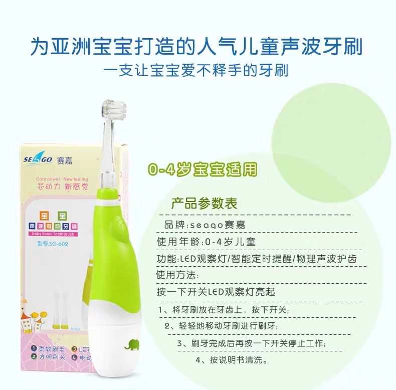 Egg General Home seago Saijia Children's Toothbrush Cat Pet Small Head Soft Hair Electric Toothbrush SG602