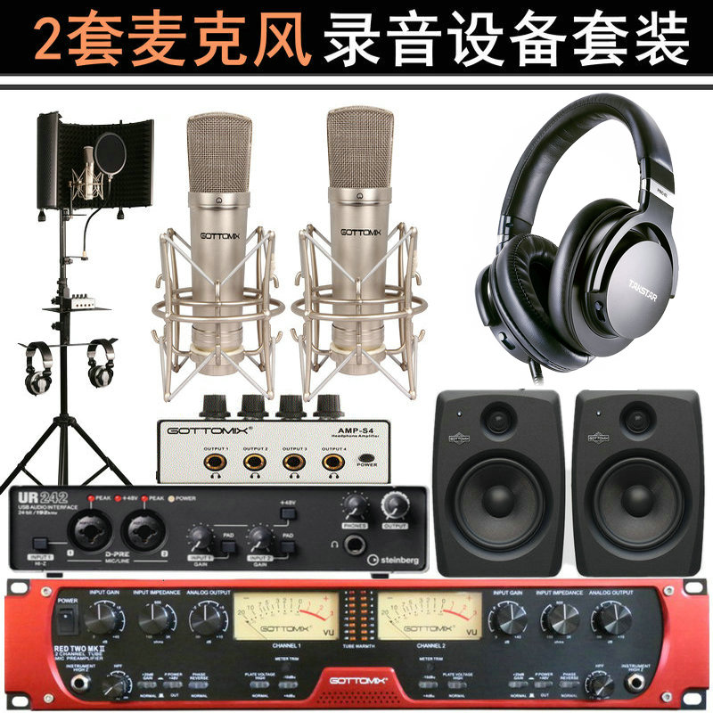 2 sets of microphone recording studio equipment set dubbing equipment set reading training arranger recording equipment