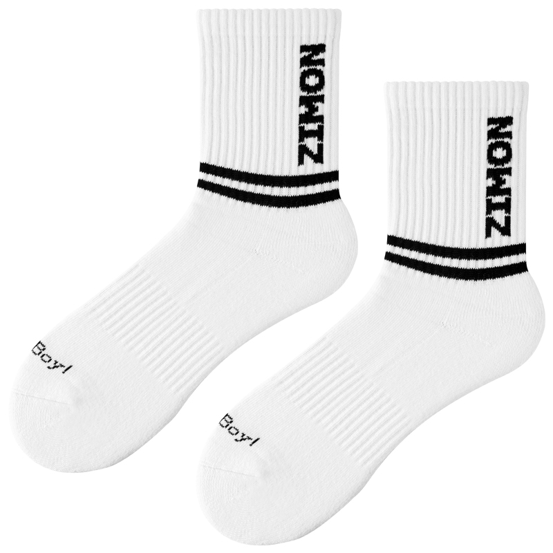 4 Twin (towel bottom thickened) men's hair ring midbarrel socks trendy striped pure cotton personality sports socks spring