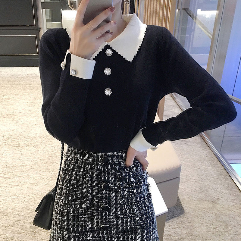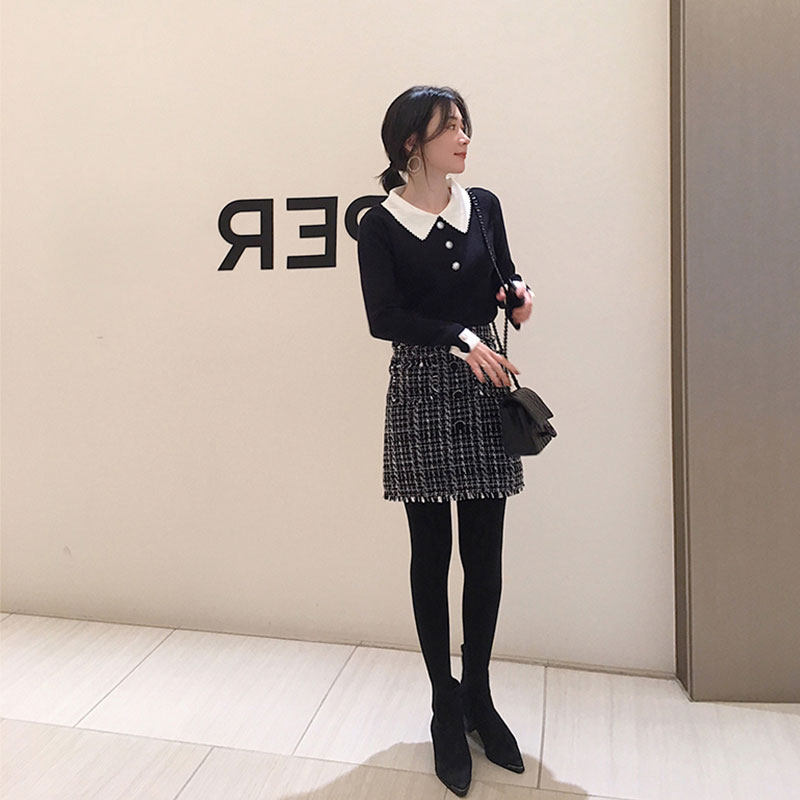 Hepburn wind net red nifty goddess fan yujie foreign style slim sweater skirt two-piece suit autumn and winter