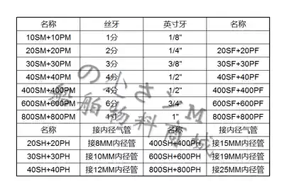 20SH PLUG 8MM TRACHEA 30SH plug 10MM TRACHEA 40SH plug 12MM trachea 20PH plug 8MM TRACHEA 30PH plug 10MM TRACHEA 40