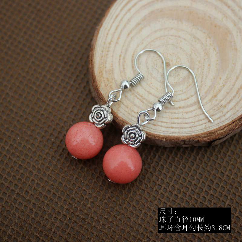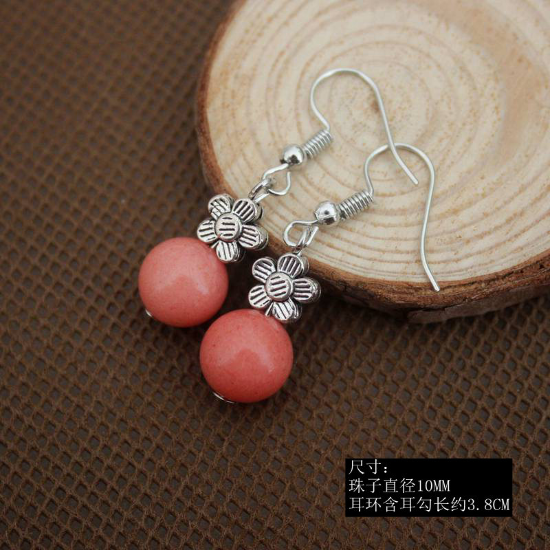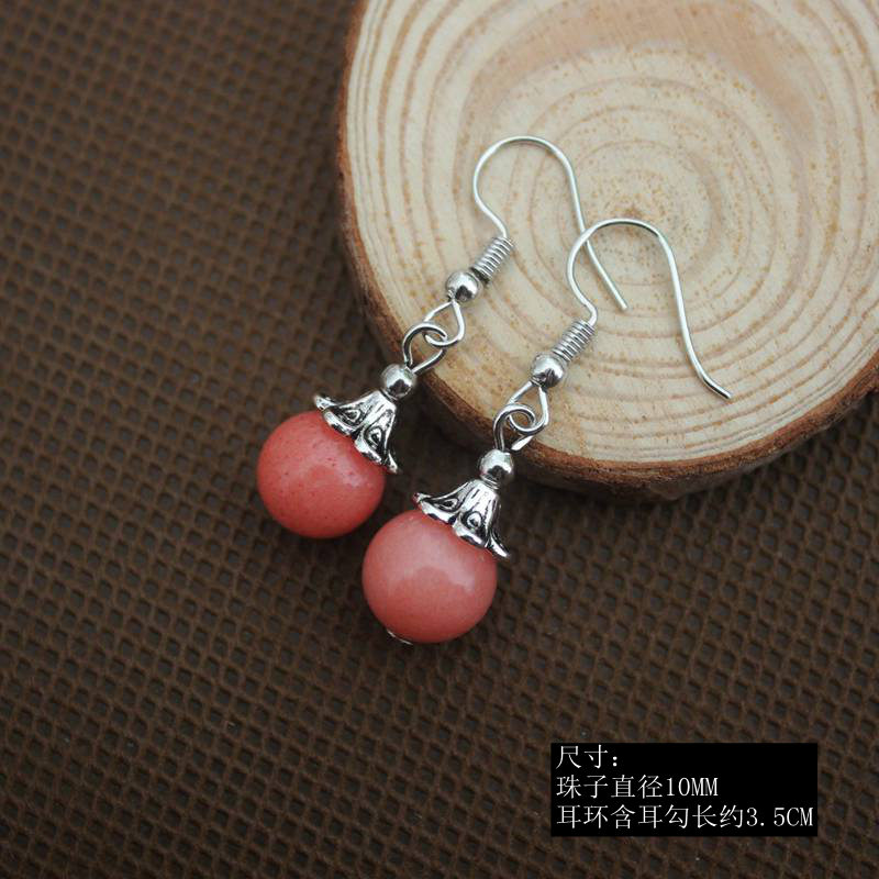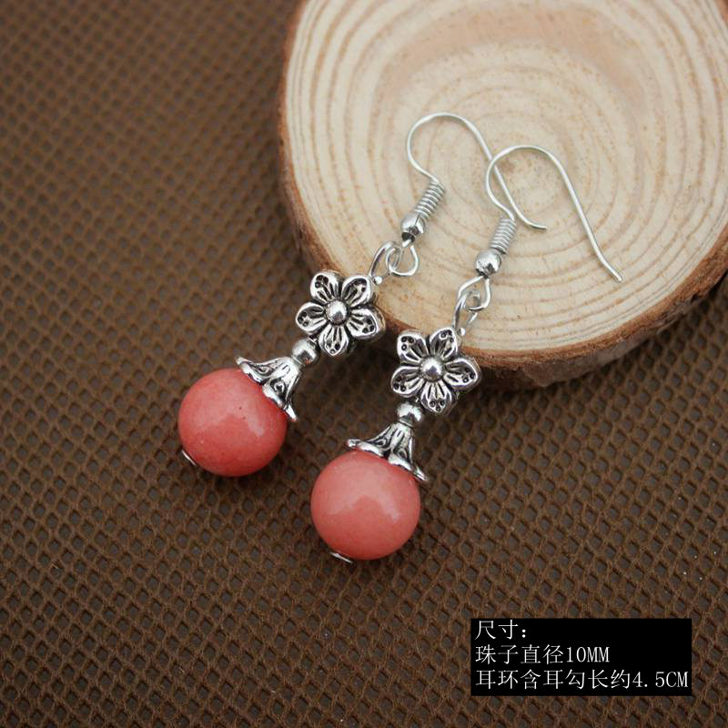 Natural red jade myelin earrings hand-crafted simple fashion crystal jewelry ancient Tibetan silver earrings ear clip girl