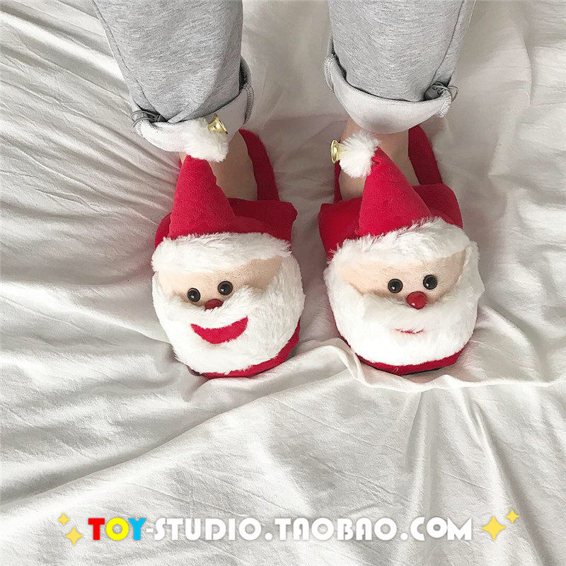 Cartoon Santa Claus indoor slippers cute creative winter adult girls Christmas warm cotton slippers home shoes