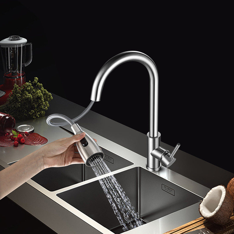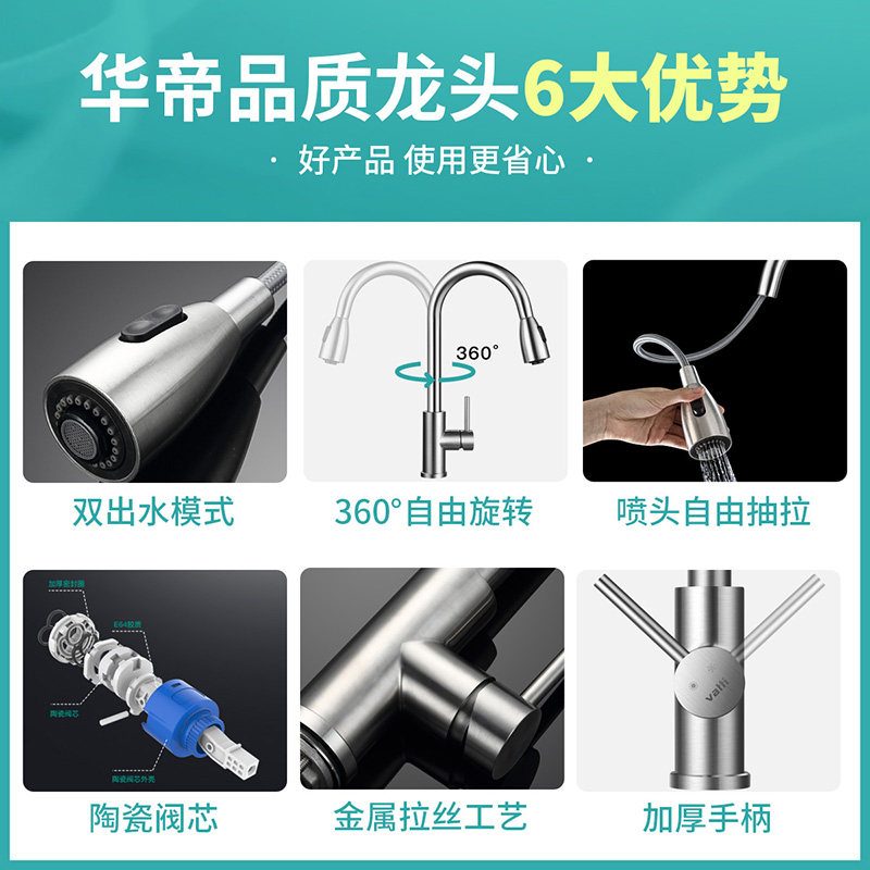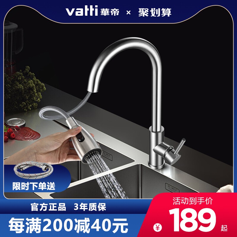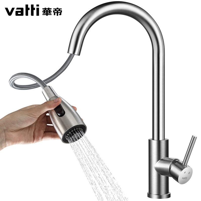 Huadi bathroom pull-out faucet Kitchen household 304 stainless steel wash basin telescopic hot and cold water faucet
