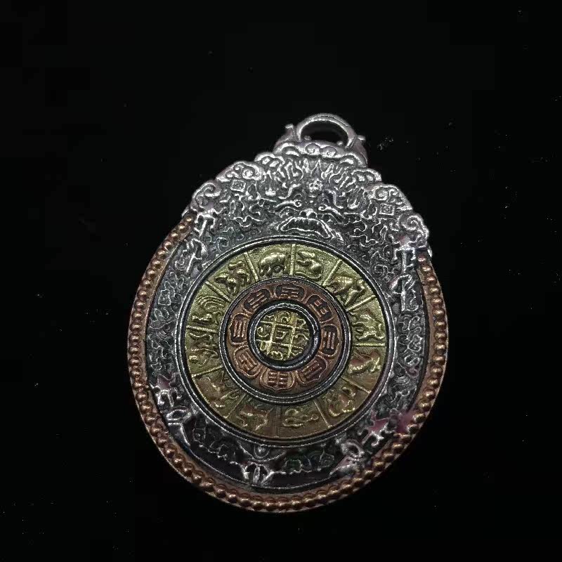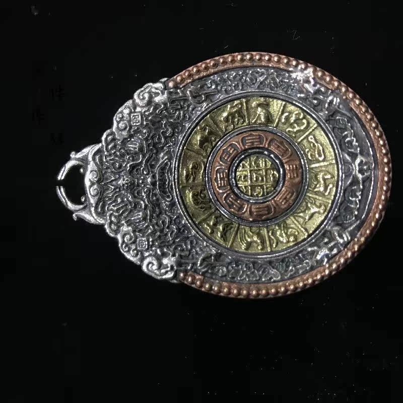 Tibetan Buddha margin 925 sterling silver red copper double-sided nine palace gossip card to do the old back cross pestle