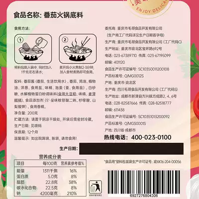 Chongqing Mao Ge sour fragrant hot pot base small hot pot seasoning seasoning package kitchen seasoning tomato pot bottom rinse vegetable base