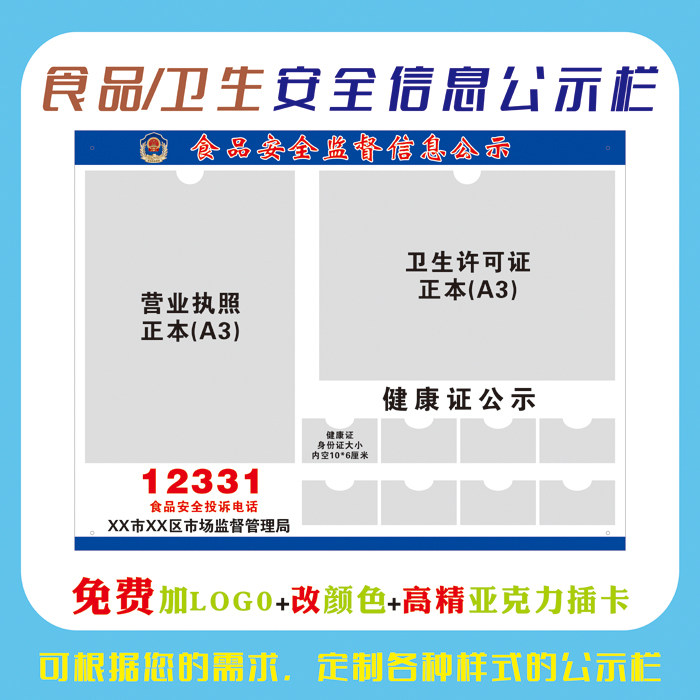 Food and Drug Safety Information Supervision Display Column Hotel Catering Service Health Permit Health Certificate Bulletin Board