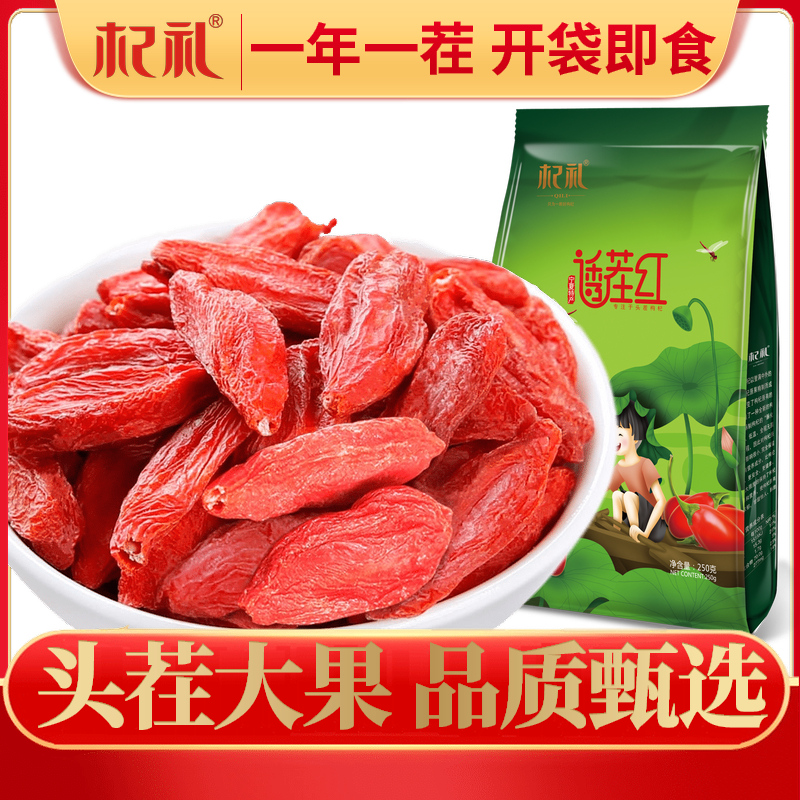 No agricultural residues)Qi Li Ningxia wolfberry head stubble wolfberry king small bag large grain Zhongning wolfberry fruit 250g excellent
