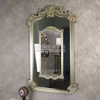 American classical art wall-mounted decorative mirror background wall creative hanging mirror custom model room retro carved porch mirror