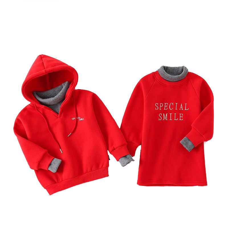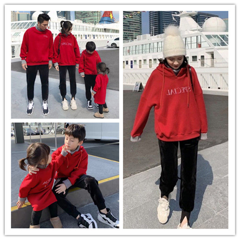 Pro-child clothes autumn and winter family of three-family red plus velvet clothing winter mother and son dress for the Chinese New Year Internet Red Mother's dress