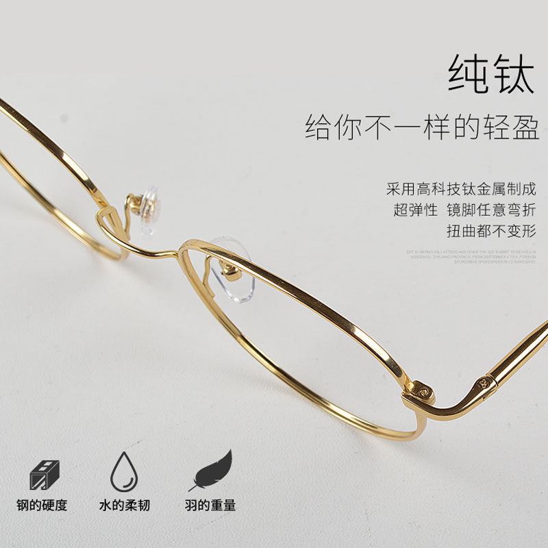 Pure titanium close-looking glass frame female retro small round frame anti-blue light radiation flat light protective eyewear slim frame gold silk spectacle frame male