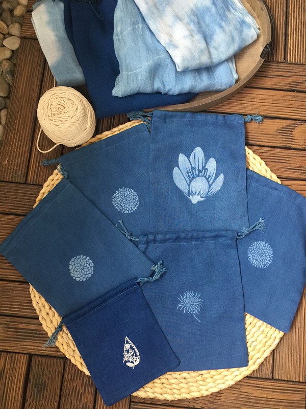 Plant dyeing Cotton Cord Pocket Plant Dyeing Blue