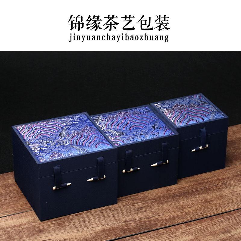 Gift Box Upscale Blue Patterned Surface Brocade Boxes Built porcelain teapot master's cup packaging box Pink cup box tailor-made