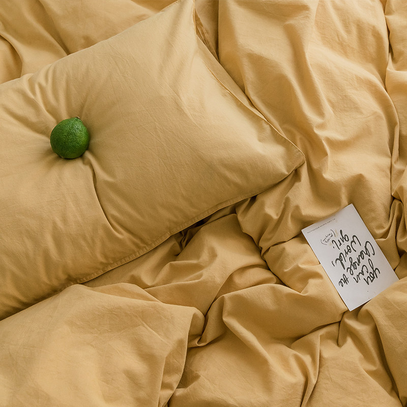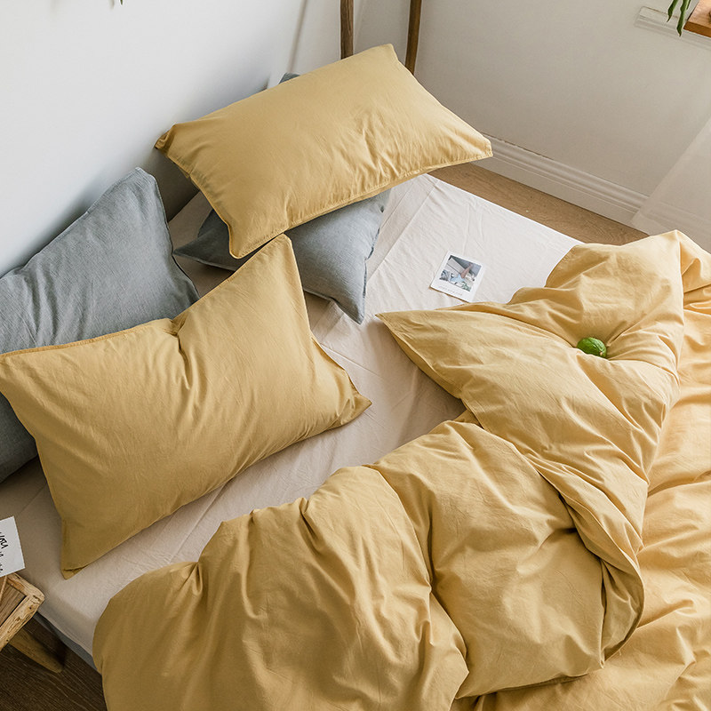 Nordic All-cotton Pure Cotton Washed Cotton Four Pieces Kit Minimalist Pure Color Double 1 5 1 8 m Sheets Quilt Cover Three Sets