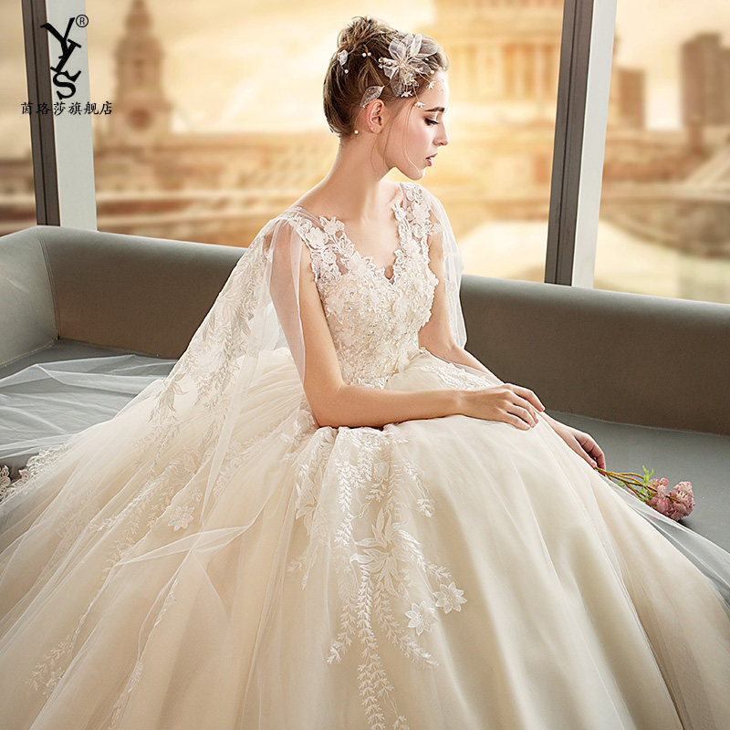 Light wedding dress 2021 new temperamental pregnant woman with high female waist and small child bridal gown with champagne superfairy dreamy