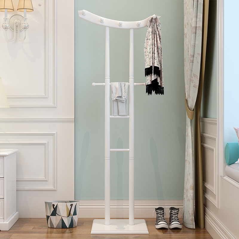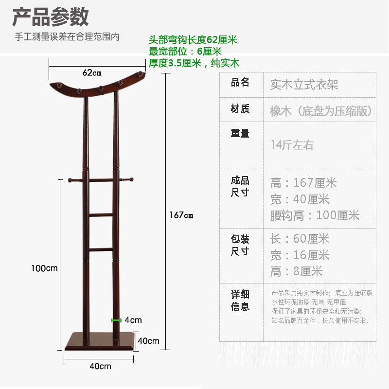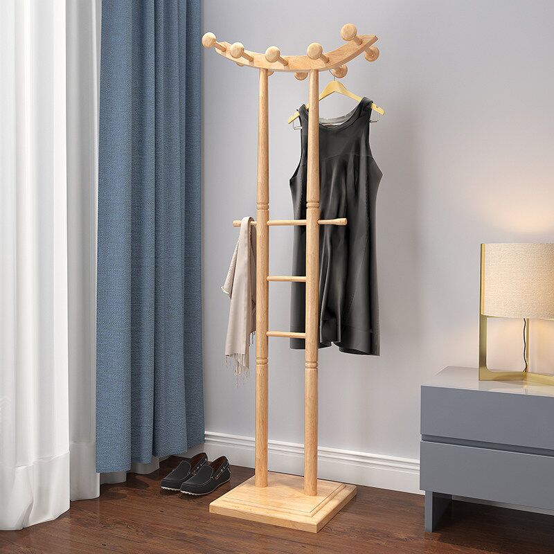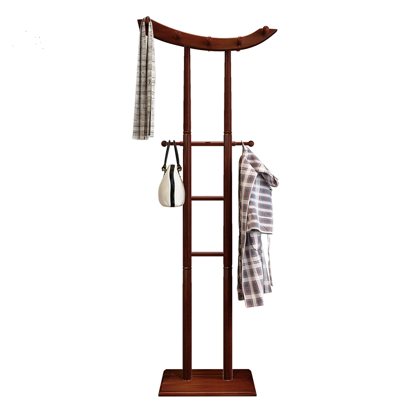 Solid wood clothes hat rack floor type double-pole hanger Chinese modern wood office hanging rack plus rough and simple vertical