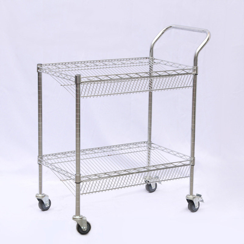 E-commerce warehouse picking truck Sorting car oblique pocket net double-layer trolley Small bevel logistics picking truck picking car
