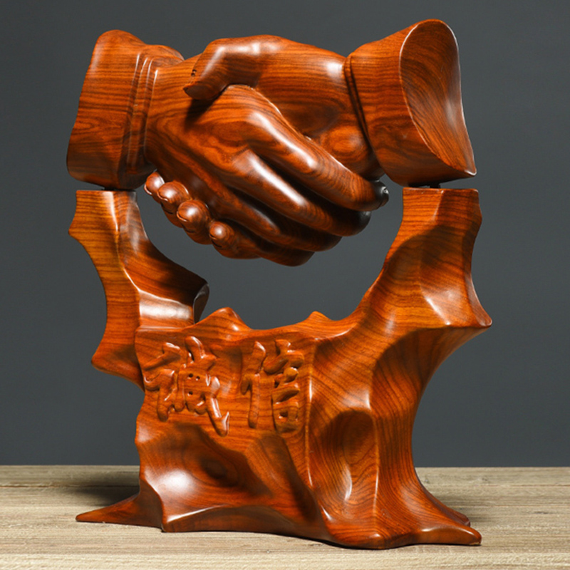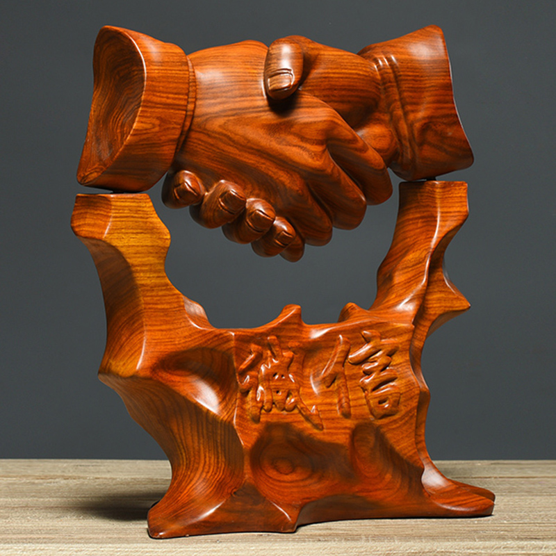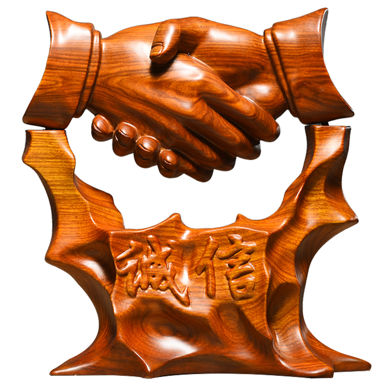 Huanghuali wood carving integrity win the world Decoration Office shop handshake decoration Opening gifts Mahogany arts and crafts