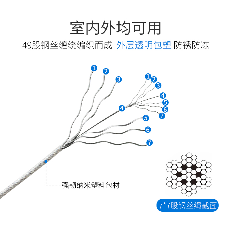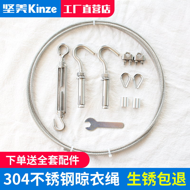 Clothesline 304 stainless steel plastic coated steel wire rope Dormitory outdoor drying artifact Household indoor balcony drying rope