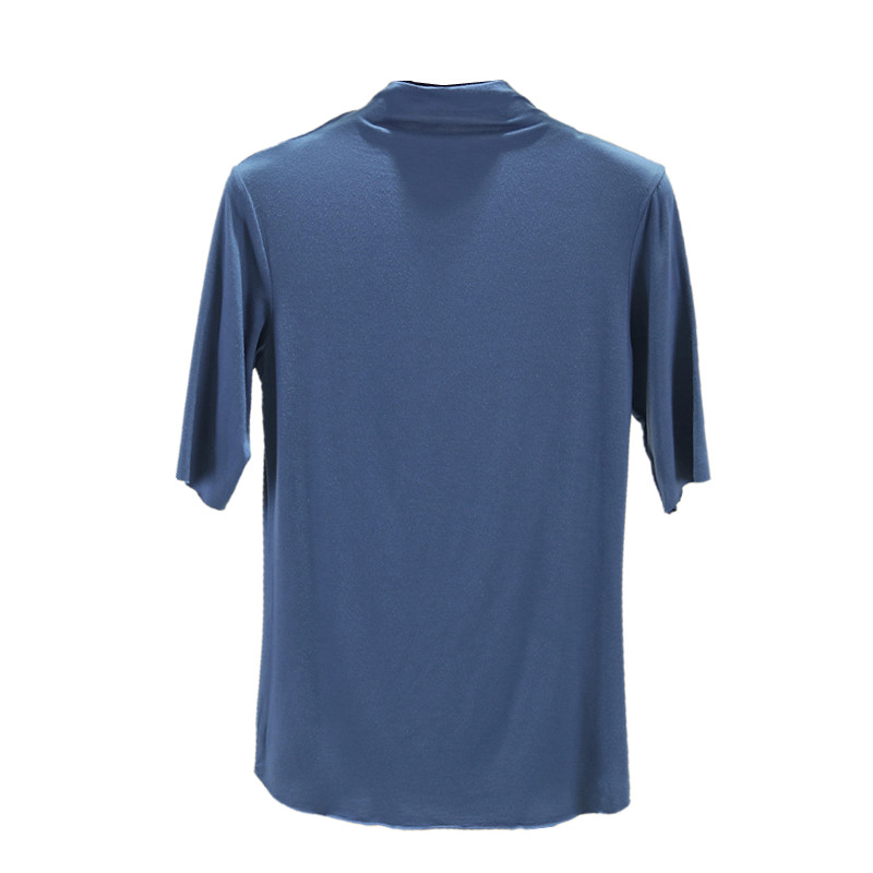 Thin-and-half-high-collar mid-sleeve blouse Women Summer Modale Large size 100 lap 50% sleeve T-shirt bottom-shirt sashimi