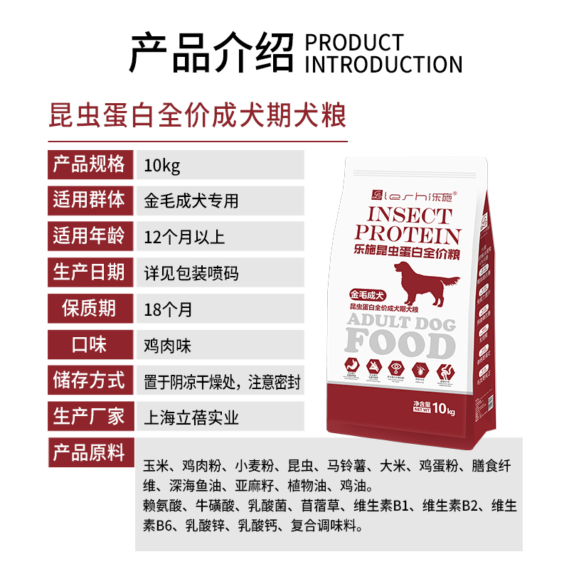 Oxfam insect protein dog food golden retriever special adult dog dog food bone supplement calcium beauty hair tear marks care black nose head 10kg