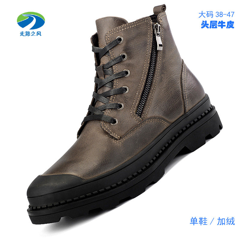 Leather motorcycle riding shoes men's double zipper autumn and winter cycling shoes waterproof motorcycle boots anti-fall thick bottom four seasons