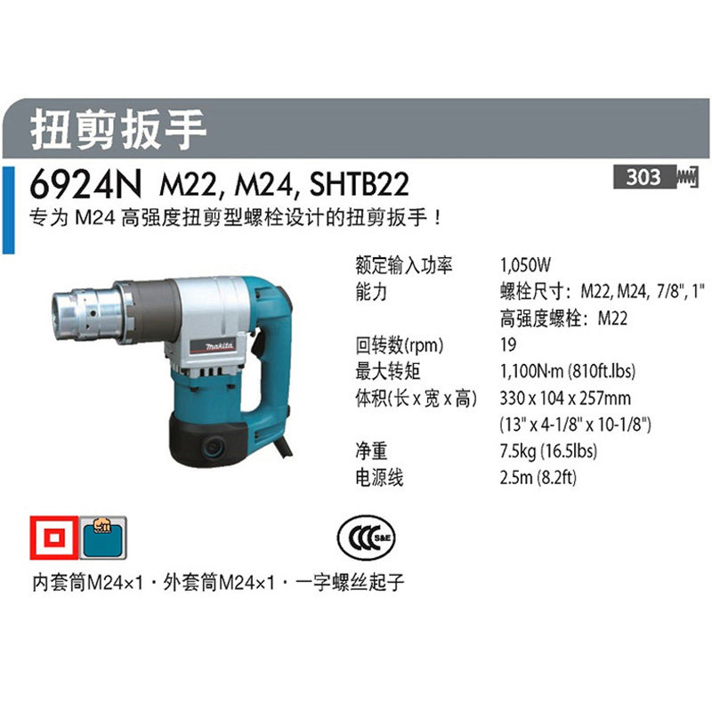 Makita Electric torsion shear wrench gun Steel structure high torque high strength bolt torque 6924N