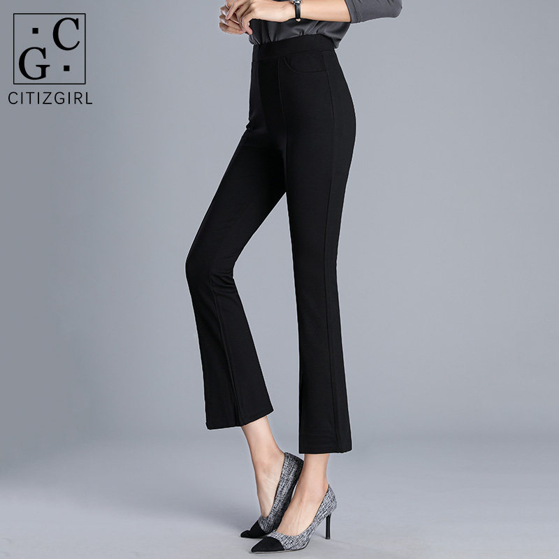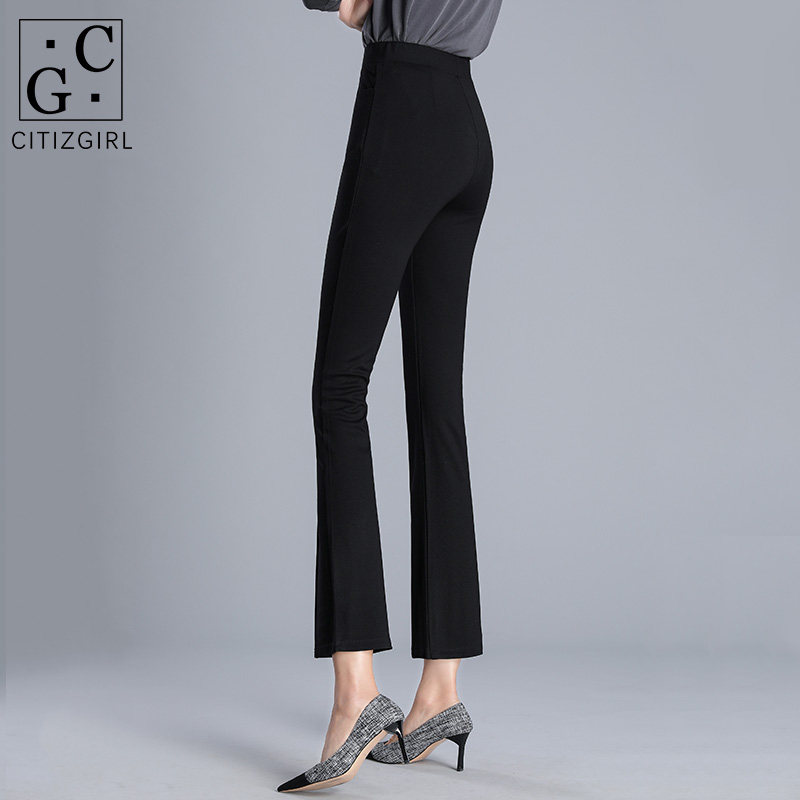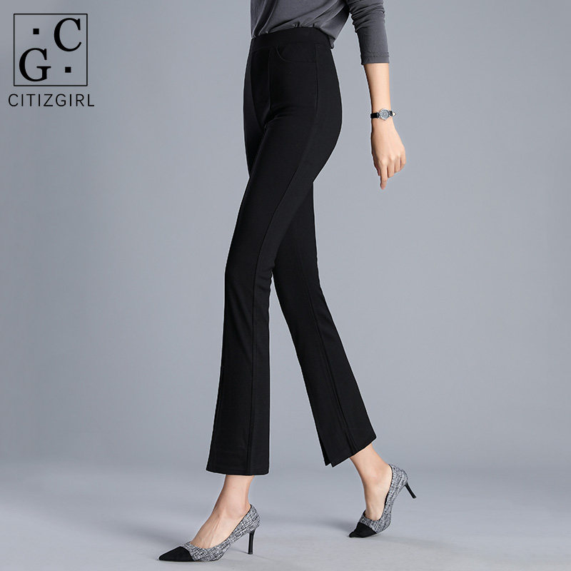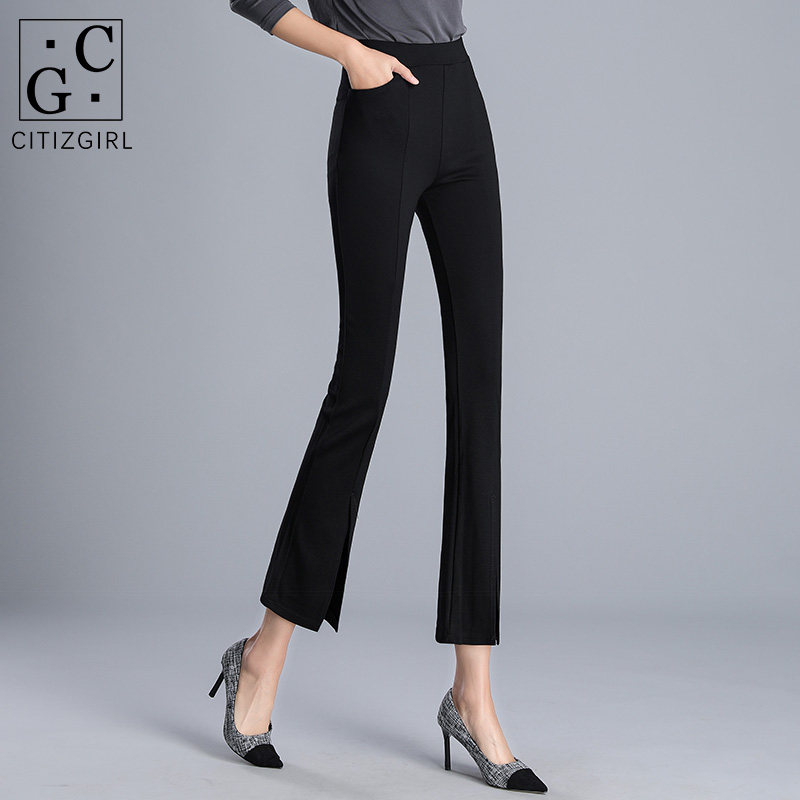 Front split micro flared pants women's high waist hanging 2021 spring new suit nine-point slim thin pants women's 935