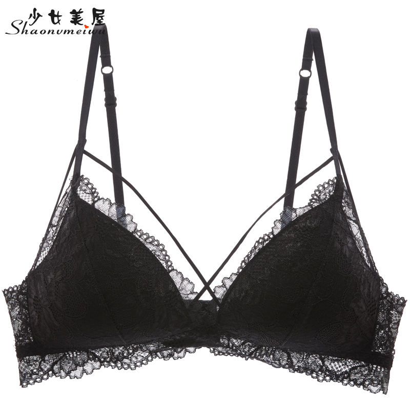 Teenage Girl Beauty House Summer No Steel Rings Women's Underwear Sexy Lace Slim with bra white slim breasted breast hood female