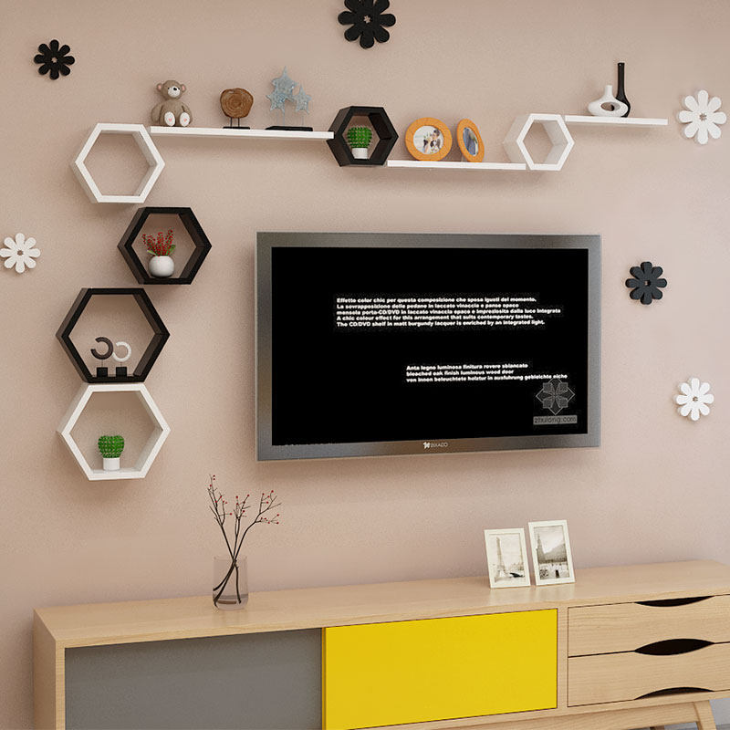 Wall shelf Living room TV and TV Background wall Creative plaid room wall Perforated Wall-mounted Cabinet Decoration