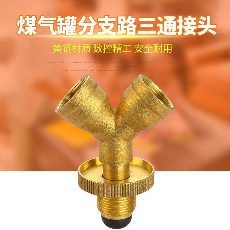 Gas tank three-way one-in-two-out connector liquefied gas cylinder gas cylinder decompression valve conversion head split three-fork head
