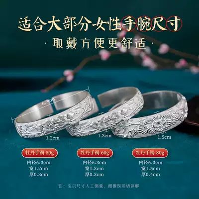 Sterling silver bracelet female 999 foot silver gift gift mother silver jewelry snow silver solid peony silver bracelet opening