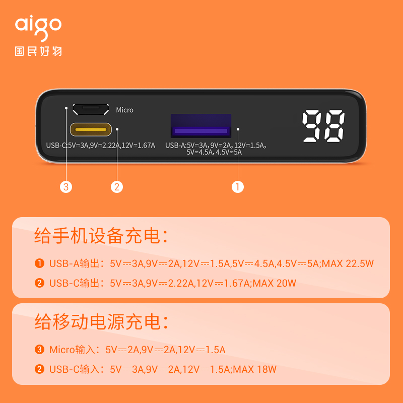 aigo Patriot mobile charging 10000 mAh action power supply 22 5WPD fast-charging mobile phone mobile charging multi-color optional mini small square portable with support enterprise DIY customization
