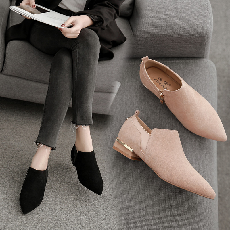 2021 spring temperament net red fairy pointed toe deep mouth single shoes women's flat shoes leather British small leather shoes loafers