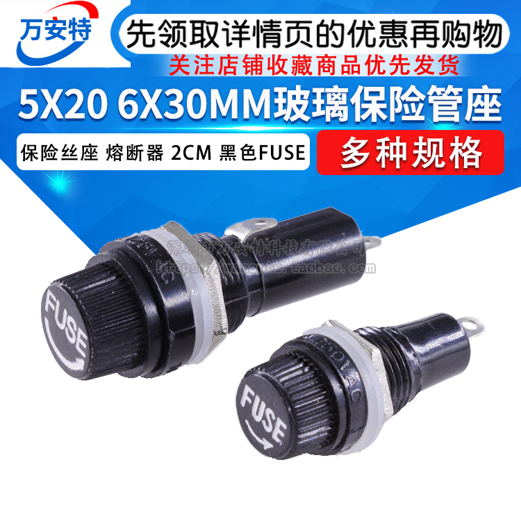 Insurance tube holder glass tube 5 * 20 6X30MM fuse base fuse 2CM black FUSE