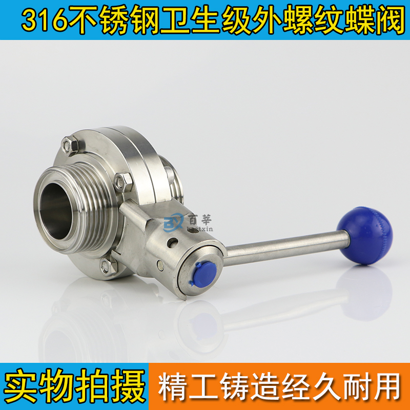 316 sanitary level external thread butterfly valve stainless steel butterfly DN32 DN32 DN40 DN50 DN80 DN80 DN100 DN100 DN100