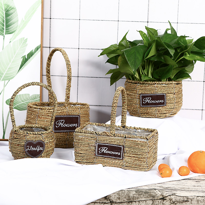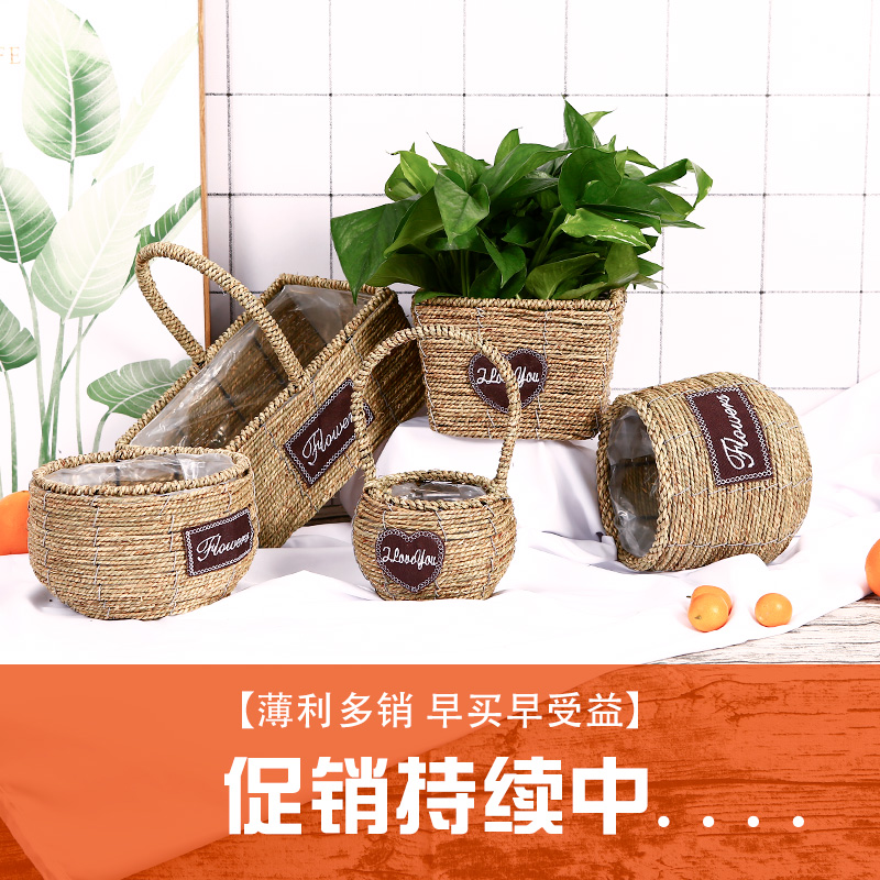Creative woven straw chicography flower pot willow gold Ge multi meats flowers basket vine choreography hand living room office home flower arrangement decorations