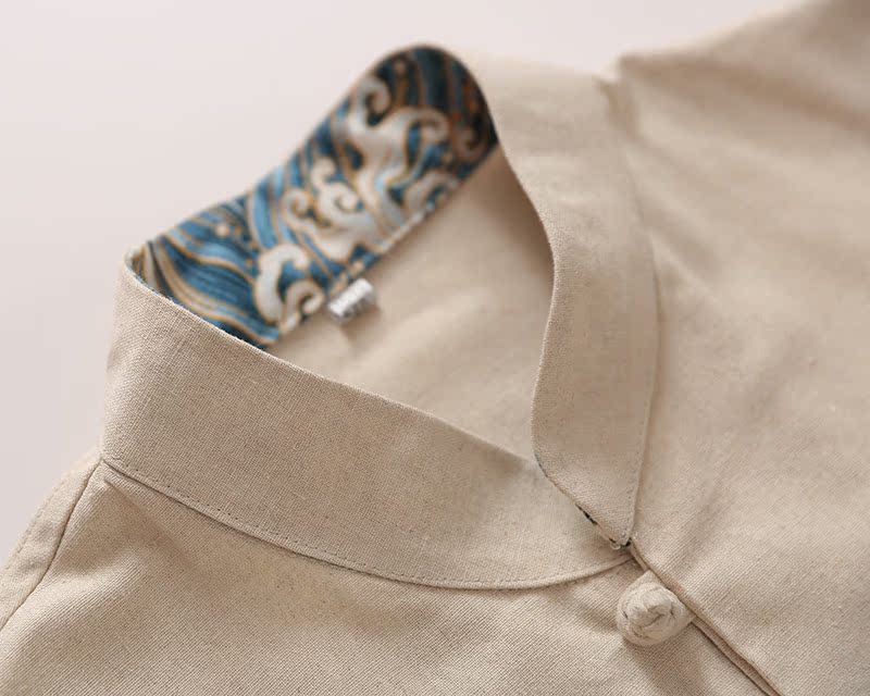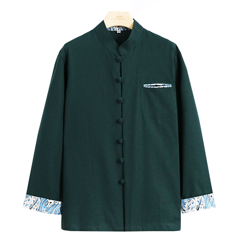 Cotton shirt stand-up collar shirt Men's long sleeve stand-up collar slim business casual Korean youth shirt off number treatment