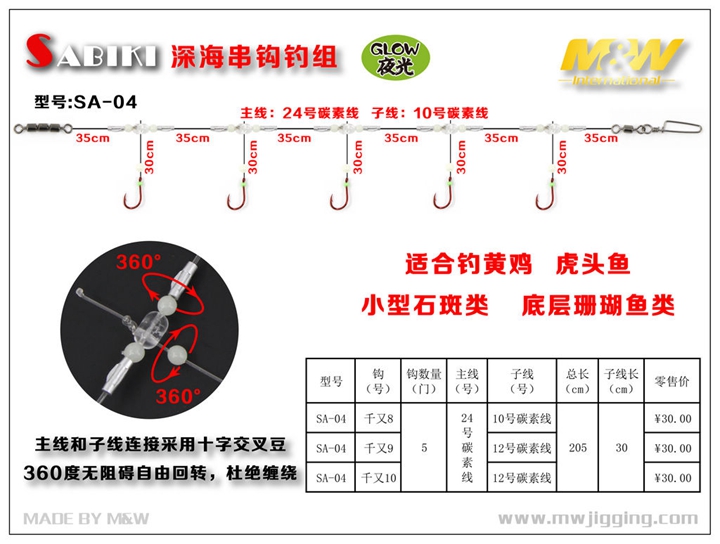 MW deep sea string hook fishing group SA-04 sea fishing string hook 5-door yellow chicken tiger head grouper fishing group sea fishing boat fishing