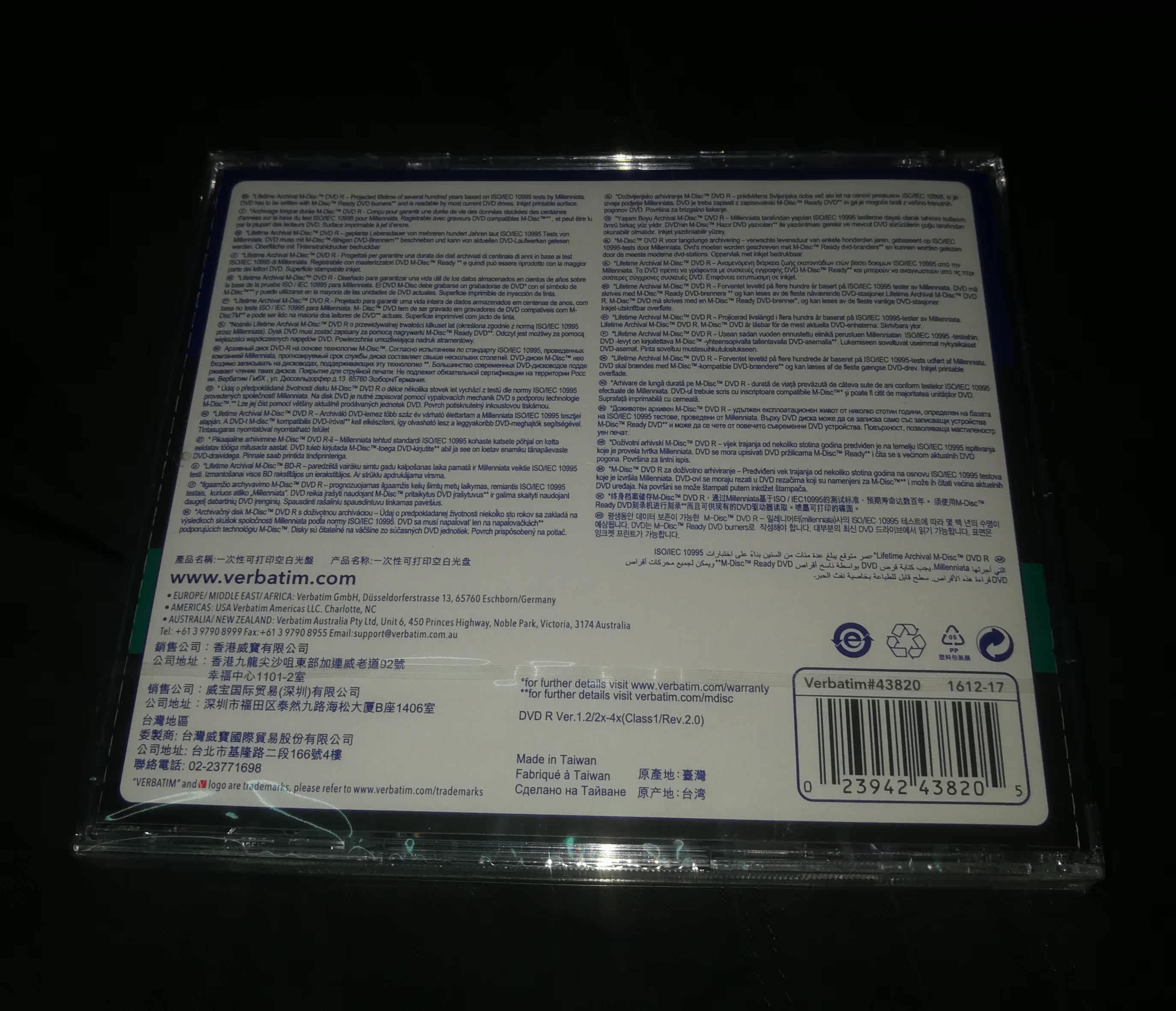 43821VerbatimM-DISC DVD-R blank file-level printable Millennium CD burning disc storage single piece