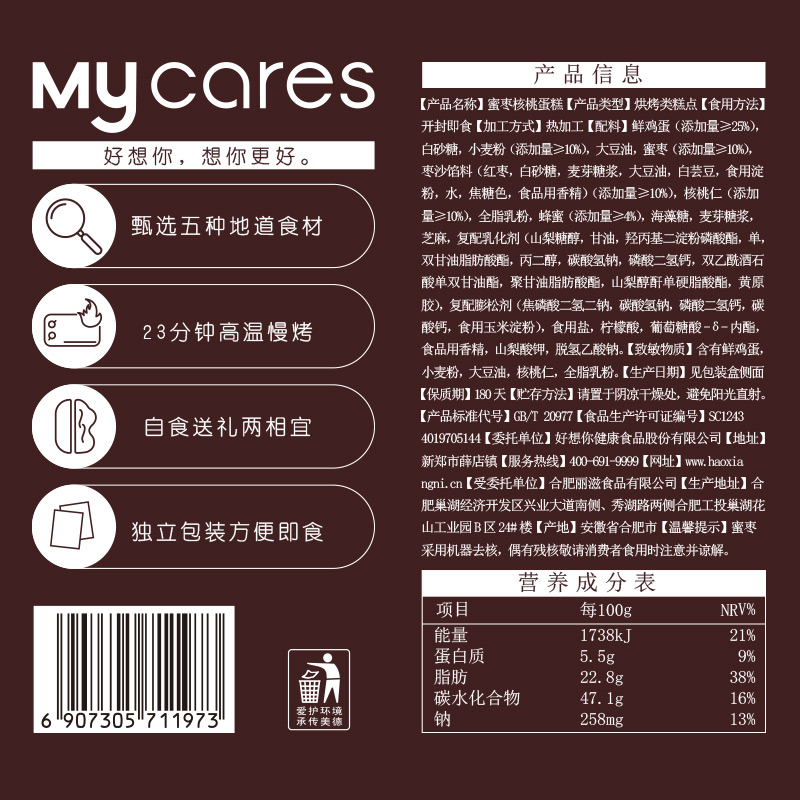 Honey Jujube Walnut Cake 540g(180g*3 bags)