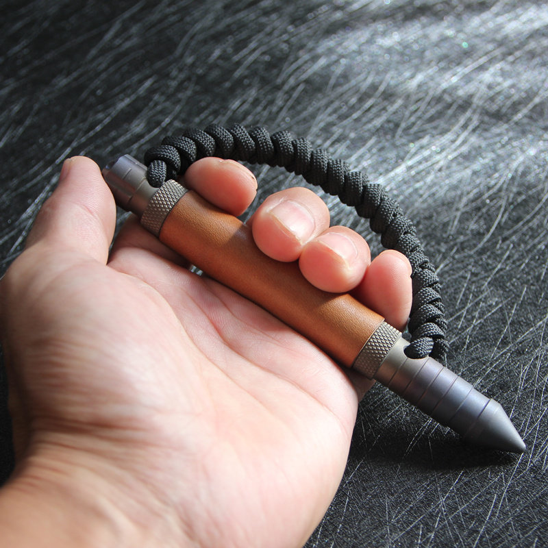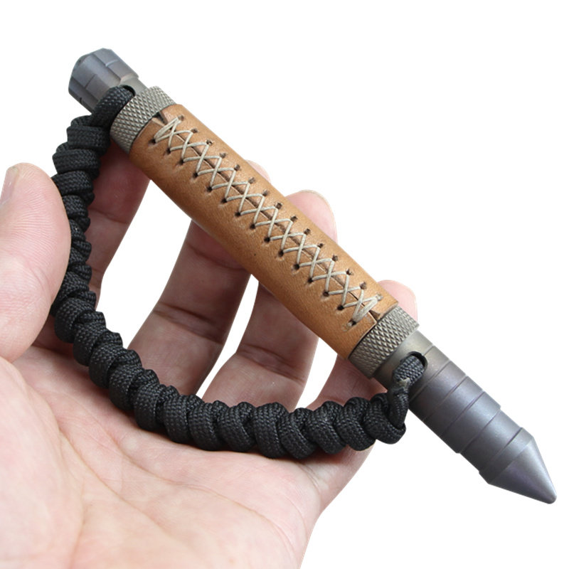Titanium Alloy Tactical Cool Stick Craftsmanship K Stick Rope Tactical Pen Burn Blue Craft Bull Leather Retro Art EDC