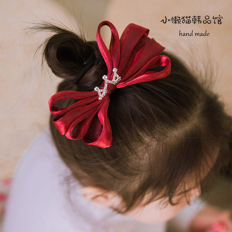 Small Lazy Cat Children's Head Adorned South Korea High-end Princess Crown Super Large Red Butterfly Knot Hairpin Girl Student Hairpin