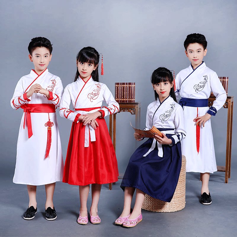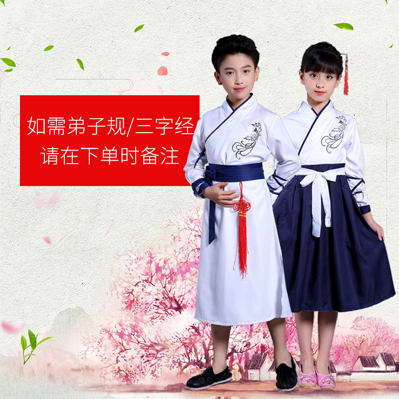 Children's Hanfu book children's ancient costume Chinese style improved Hanfu men's and women's kindergarten Chinese culture clothing three-character scripture costume