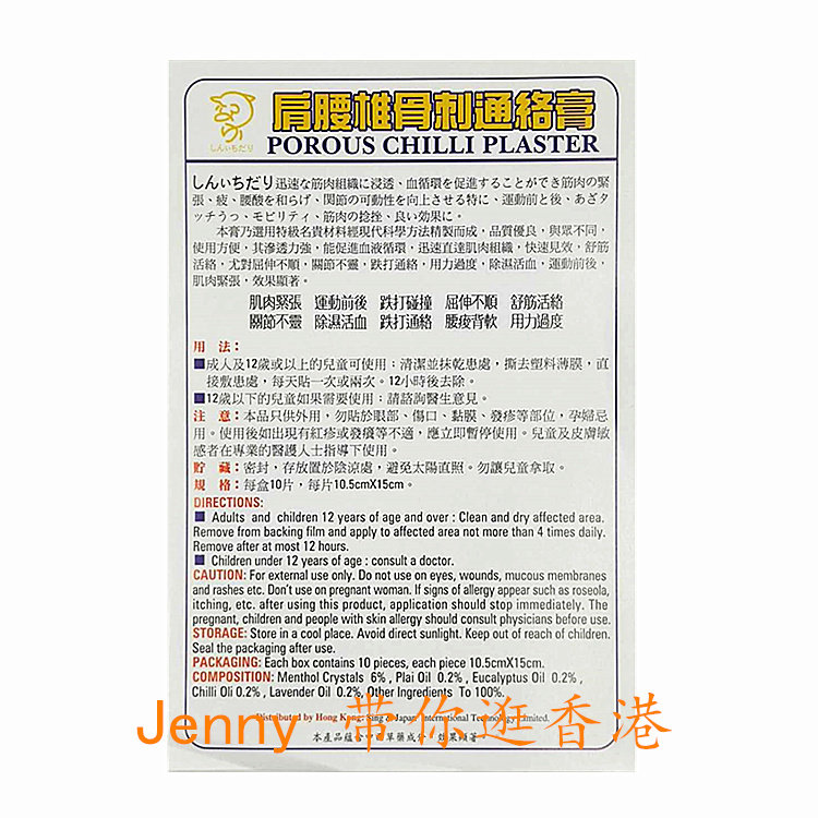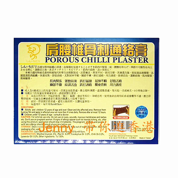 Hong Kong original purchase of POROUS CHILLI PLASTER SHOULDER lumbar spine bone thorn Tongluo PASTE 10 pieces