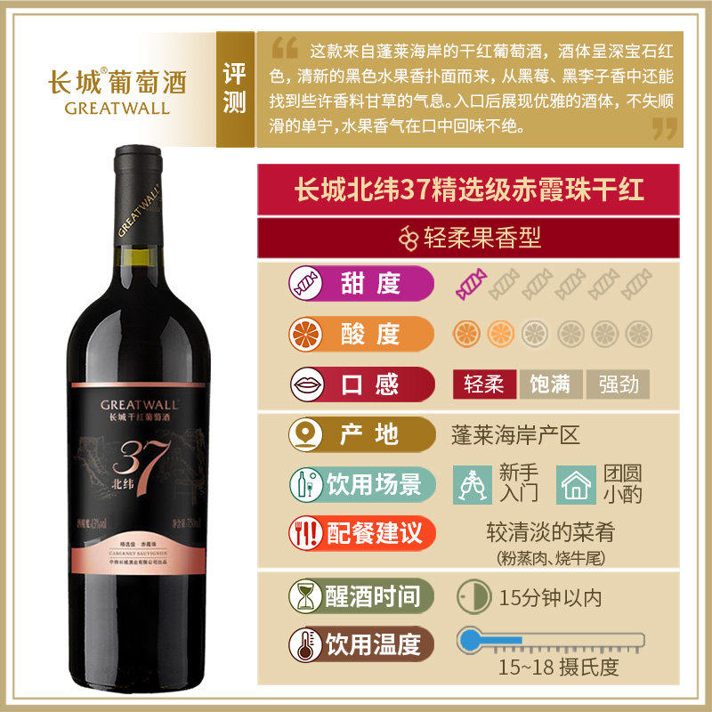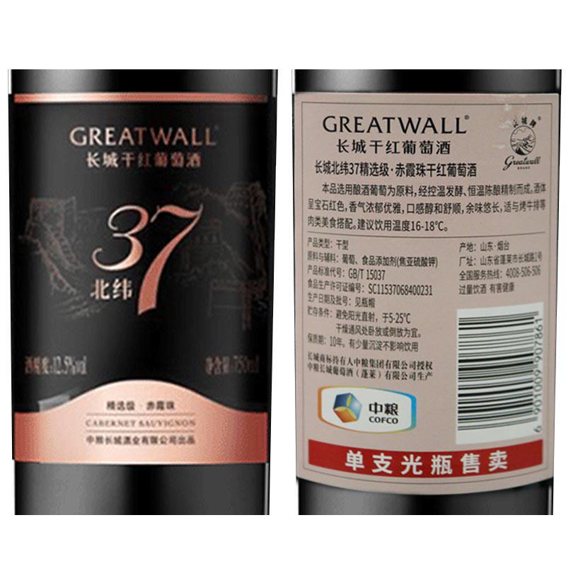 Domestic red wine Great Wall dry red wine North Wine 37 Cabernet Saubwe wine 2 packs 6 pieces