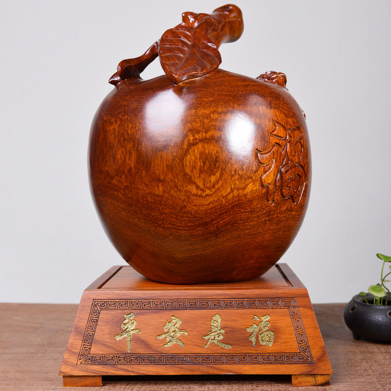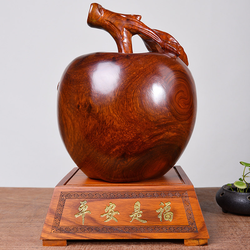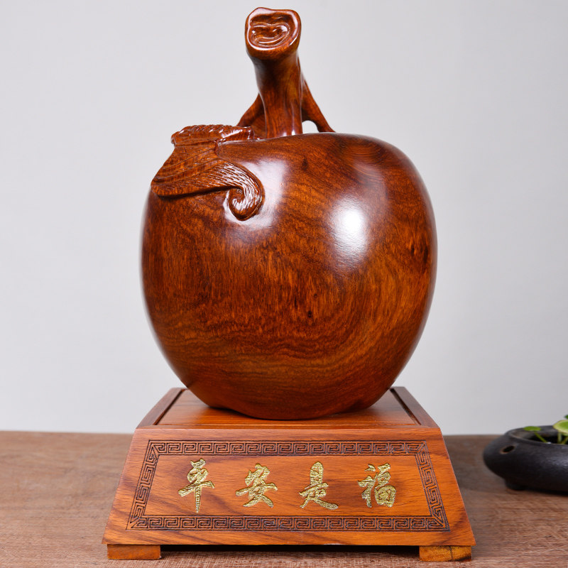 Huanghua pear solid wood carving ornaments Apple home accessories Ping An fruit mahogany crafts Christmas Eve opening gifts